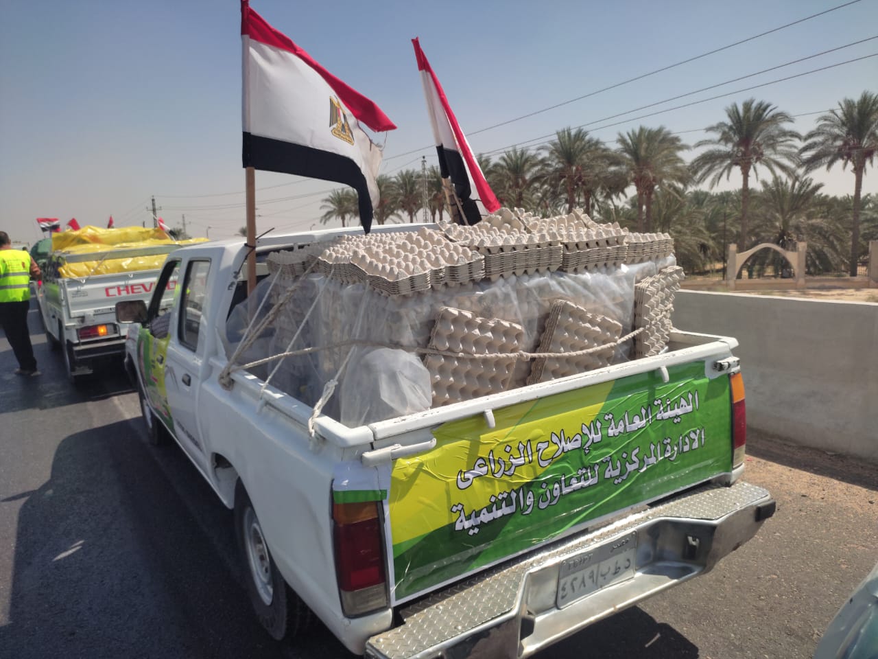 أطلق السيد القصير وزير الزراعة واستصلاح الأراضي صباح اليوم أكبر قافلة للسلع الغذائية والخدمات البيطرية إلى محافظة شمال سيناء تضم حوالى 41 سيارة فيها اكثر من 75 طن من السلع الضرورية للاسرة المصرية سواء اللحوم والدواجن والبيض والالبان وأيضا الأرز والسكر والخضراوات الطماطم والبطاطس والبصل وجميع أنواع البقوليات.