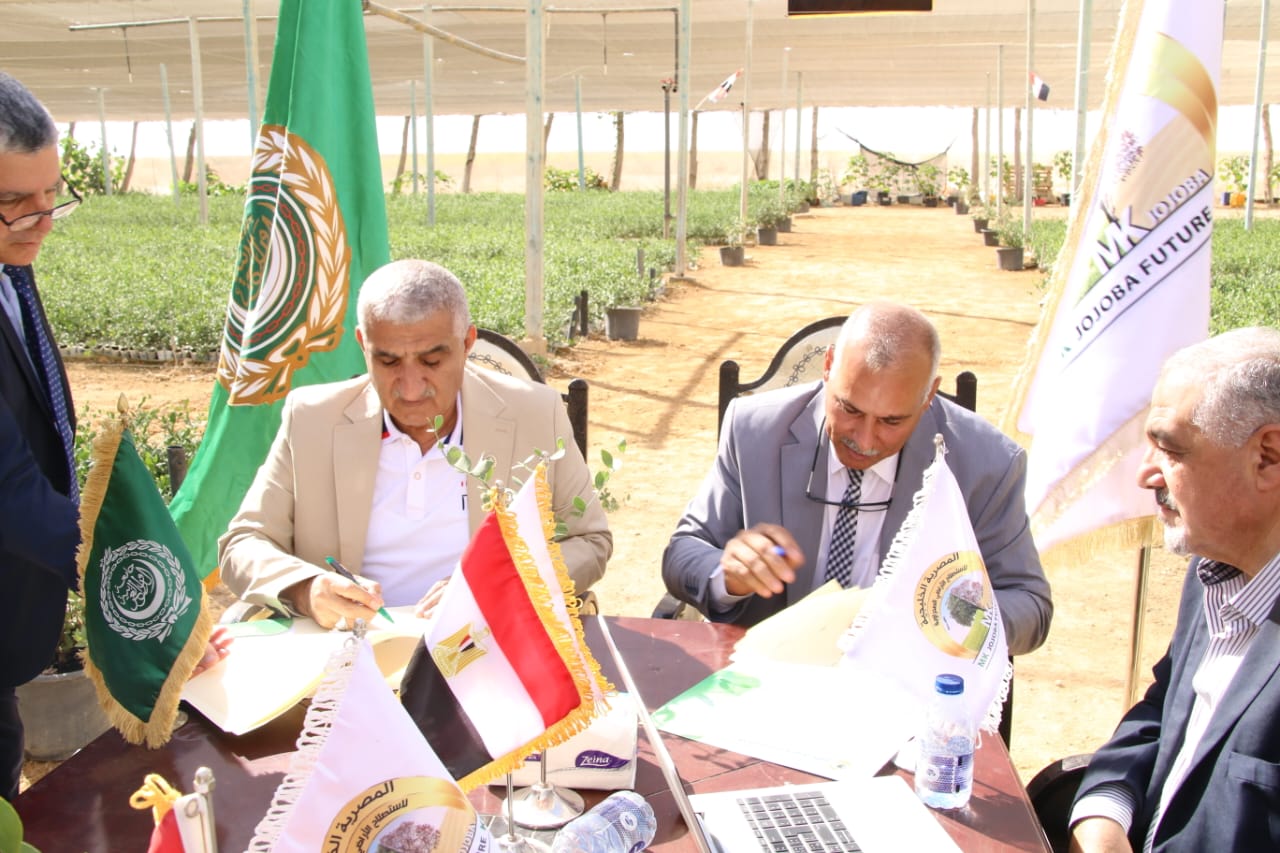 ومن جانبه قال المهندس اسماعيل محمد رئيس الشركة المصرية الخليجية لإستصلاح الأراضى الصحراوية ان مذكرة التعاون مع منظمة المركز العربي “اكساد” تستهدف تنفيذ مشروعات عملاقة تدعم المبادرات العربية لمواجهة مخاطر المناخ والتكيف مع التغيرات المناخية التي تهدد البيئات الجافة في المنطقة العربية مشيرا الي ان الشركة لديها خطط تنفيذية لانتاج 50 مليون شتلة جوجوبا لتلبية الطلب المتزايد علي هذا النوع من الزراعات لخدمة التنمية المستدامة.