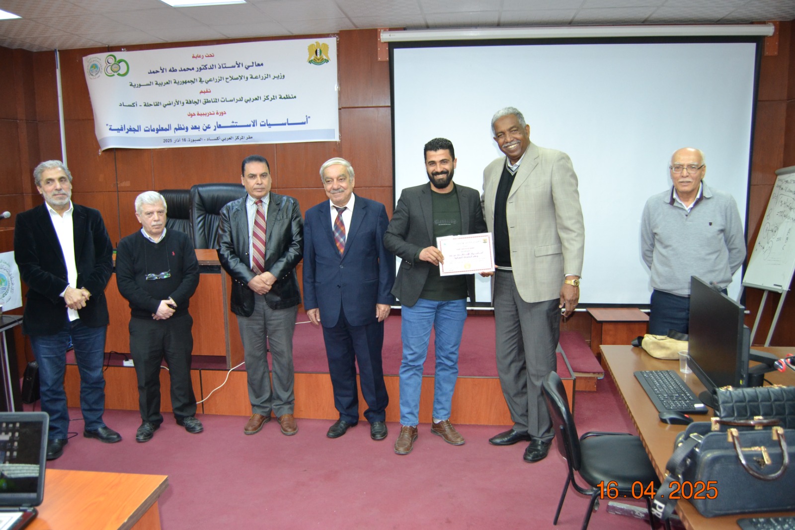 إختتمت اليوم الأربعاء 16 أبريل 2025 في مقر منظمة المركز العربي لدراسات المناطق الجافة والأراضي القاحلة «أكساد» بدمشق، الدورة التدريبية المتخصصة حول «الاستشعار عن بعد ونظم المعلومات الجغرافية»، التي نظمها المركز بالتعاون مع وزارة الزراعة في سورية، بمشاركة 27 مهندساً زراعياً من مختلف المحافظات السورية.