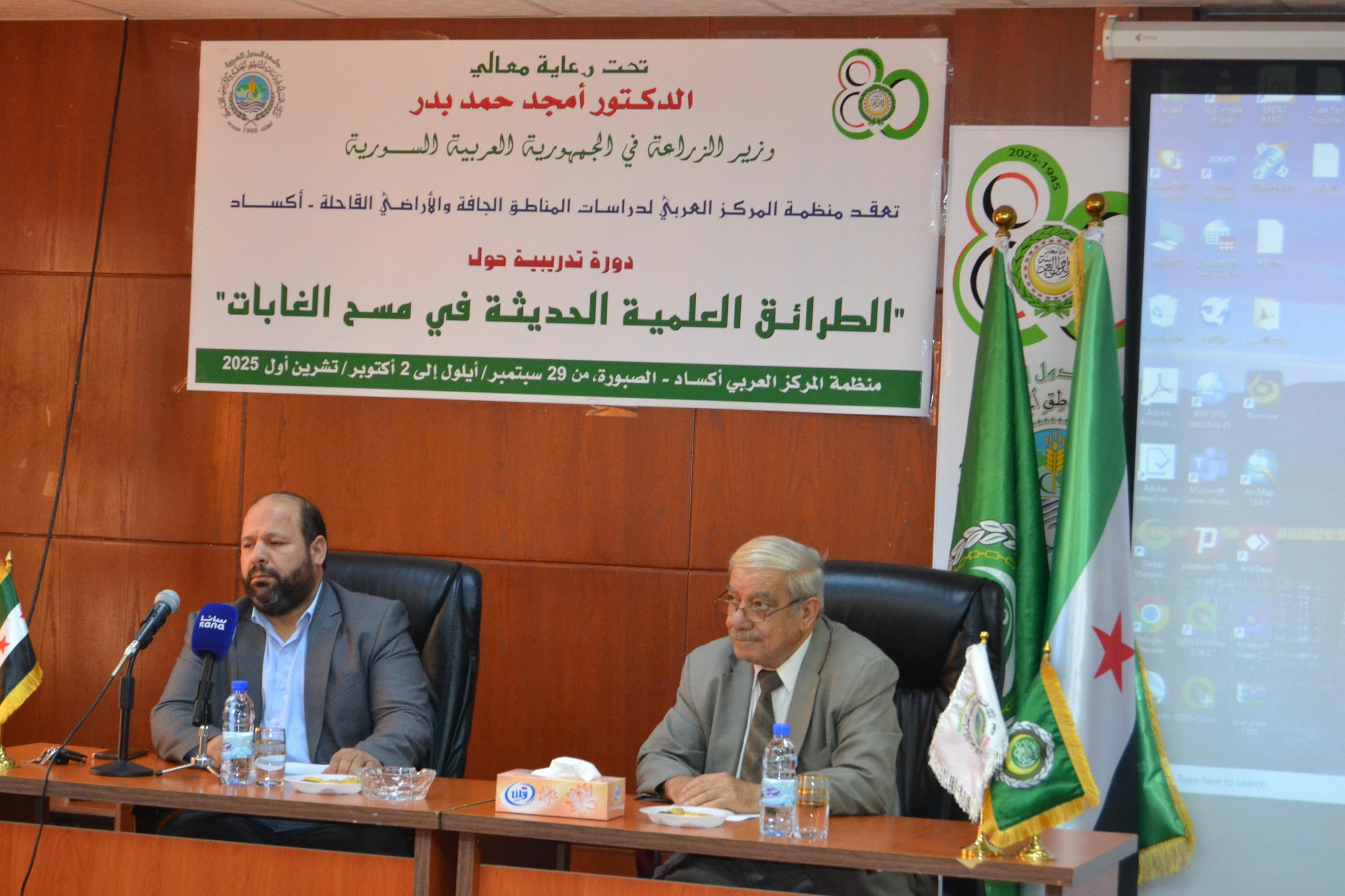 من جانبه أكد الدكتور أيهم عبد القادر، معاون وزير الزراعة السوري الدكتور أمجد بدر في كلمته على أن هذه الدورة تمثل استمراراً للتعاون المثمر مع بيت الخبرة العربي منظمة «أكساد»، مشدداً على الأهمية البالغة لاستخدام التقنيات الحديثة في مسح الغابات، خاصة في ظل الحرائق التي تعرض لها الغطاء النباتي في سوريا وموجة الجفاف غير المسبوقة  بسبب  الآثار السلبية لظاهرة التغيرات المناخية.