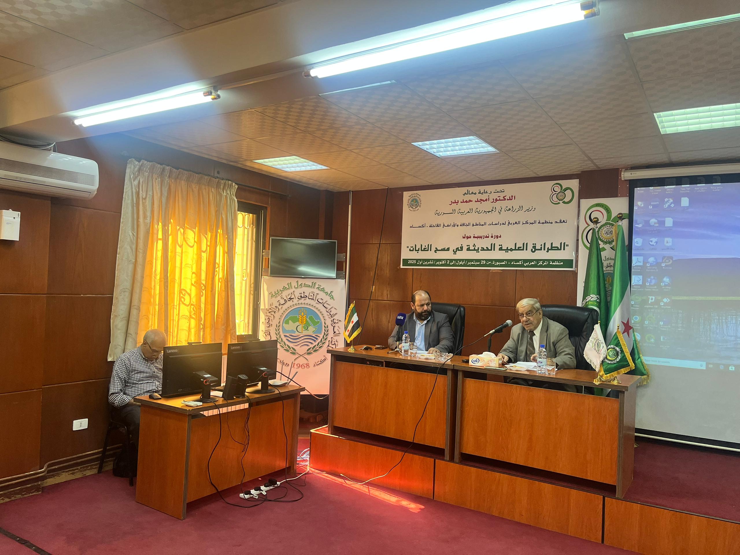 إفتتح الدكتور نصرالدين العبيد مدير منظمة المركز العربي لدراسات المناطق الجافة والأراضي القاحلة «أكساد» دورة تدريبية متخصصة حول “الطرائق الحديثة في مسح الغابات”، وتستمر حتى 2 أكتوبر 2025، يشارك فيها 28 متدربا من وزارة الزراعة في سورية، بحضور الدكتور أيهم عبد القادر معاون وزير الزراعة نيابة عن الدكتور أمجد بدر وزير الزراعة وذلك في مقر المنظمة بالعاصمة السورية دمشق.
