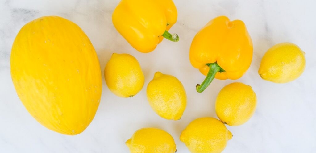 الأطعمة الصفراء مثل الليمون الأصفر، الموز، الفلفل الأصفر تحتوي على مركبات الفلافونويدات التي لها خصائص مضادة للأكسدة والتي توفر حماية من السرطان (Anticancer) ومضادة للإلتهابات (Anti-inflammatory)، و تحتوي أيضا على فيتامين ج الذي يساعد على معادلة الجذور الحرة في الجسم.