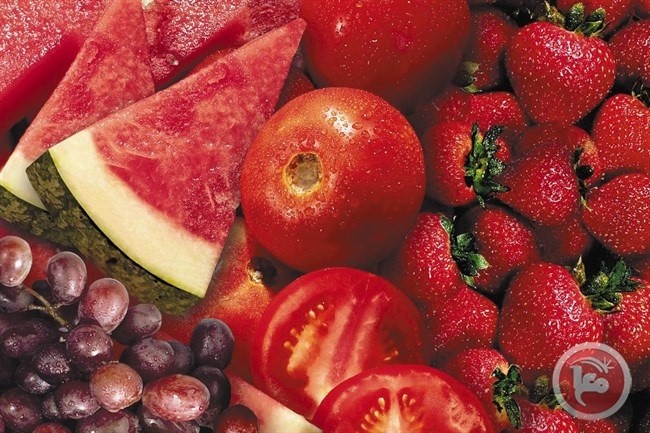 الأطعمة الحمراء مثل الفراولة، الفلفل الأحمر، الطماطم، الرمان، البنجر، والبطيخ تحتوي على مضادات أكسدة تحمي الخلايا من تلف الجذور الحرة. يعد الفلفل الأحمر مصدرًا ممتازًا لفيتامين ج (Vitamin C) وبيتا كاروتين، اللذين يساعدان في محاربة الجذور الحرة وتقليل الإلتهابات.
