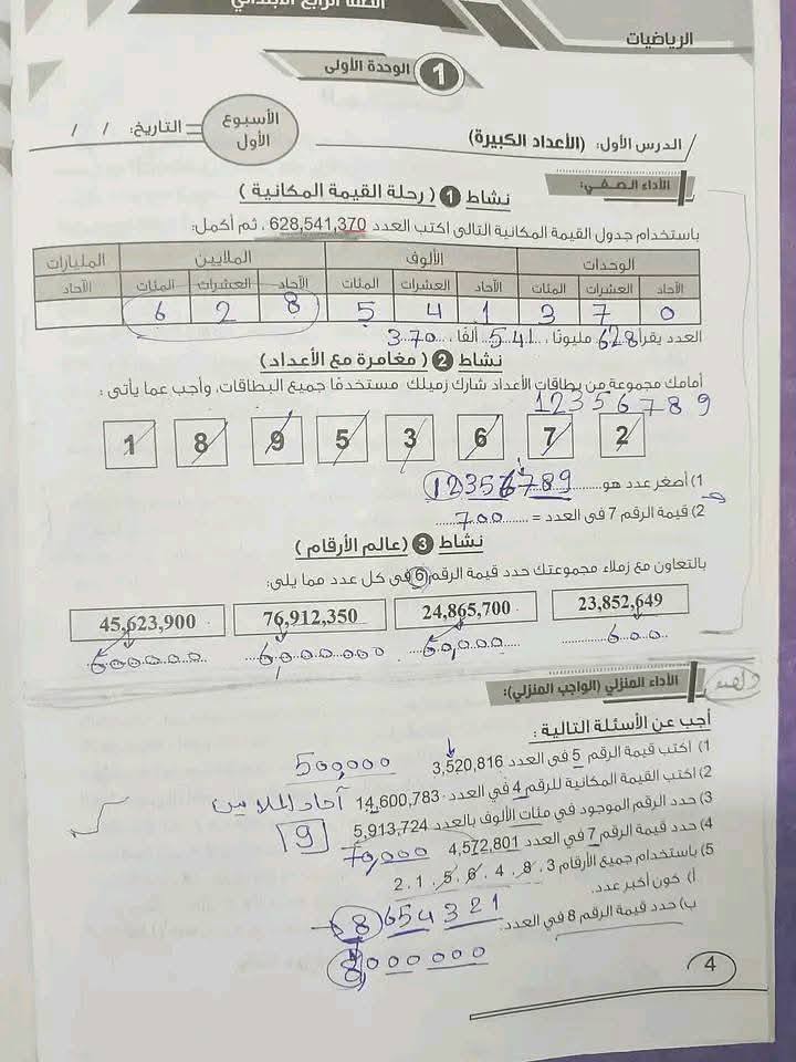 هُنا.. حل تقييم الرياضيات للصف الرابع الابتدائي 2025