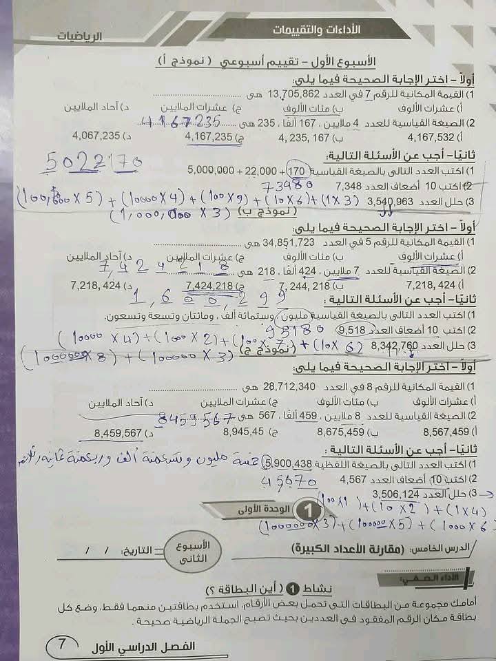 ويمكن أيضًا لطلاب الصف الرابع الابتدائي الاطلاع على حل التقييم الأسبوعي الأول رياضيات من خلال الصور التالية: