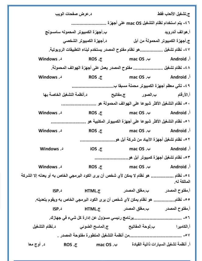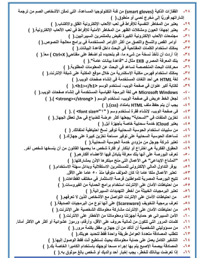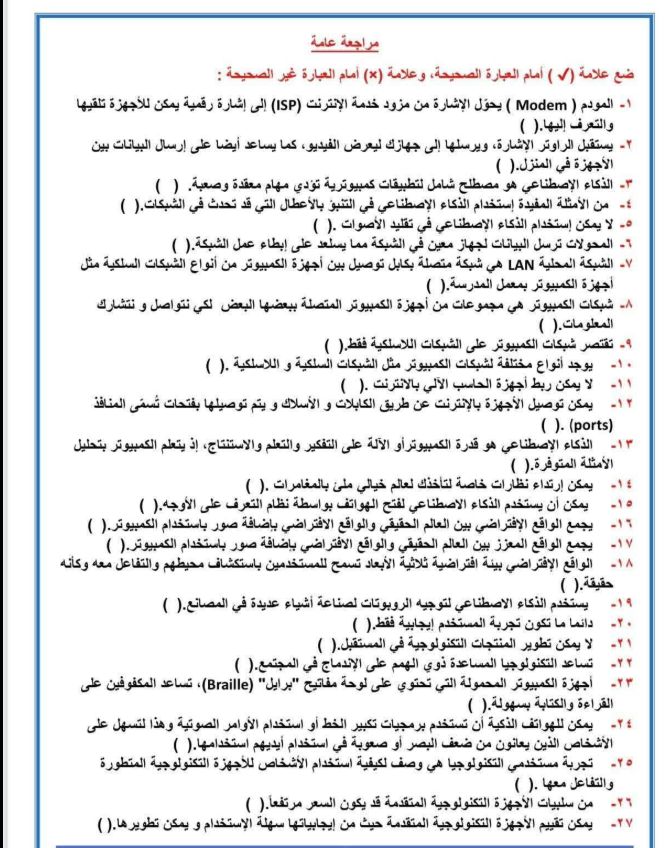 مراجعة تكنولوجيا الصف السادس الابتدائي 2026