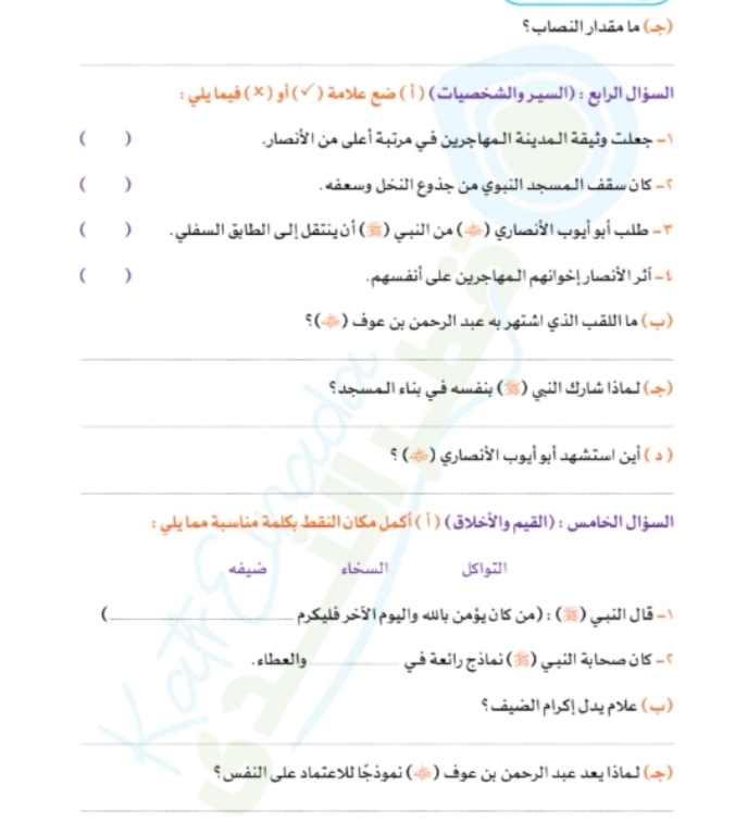الوحدة الأولى: الدين والكرم.