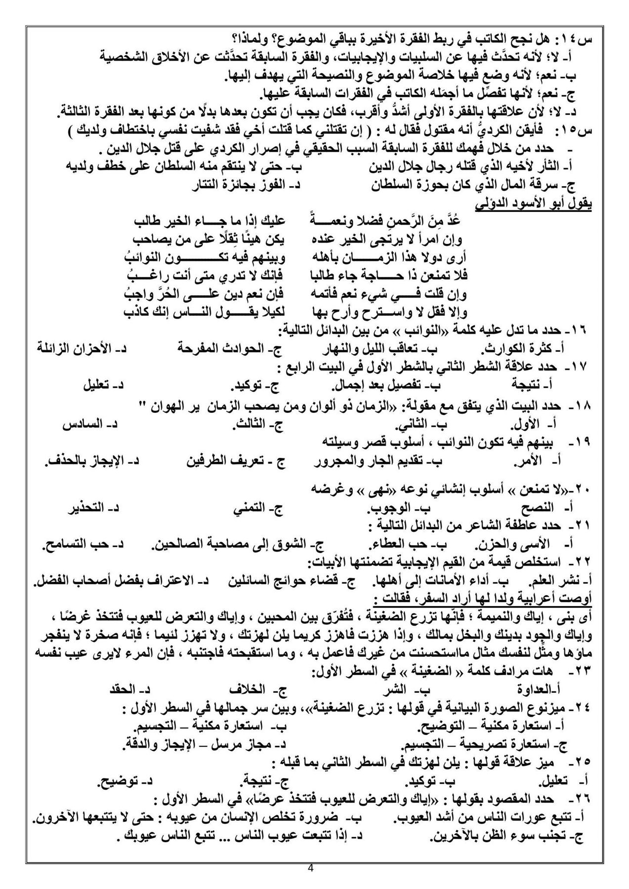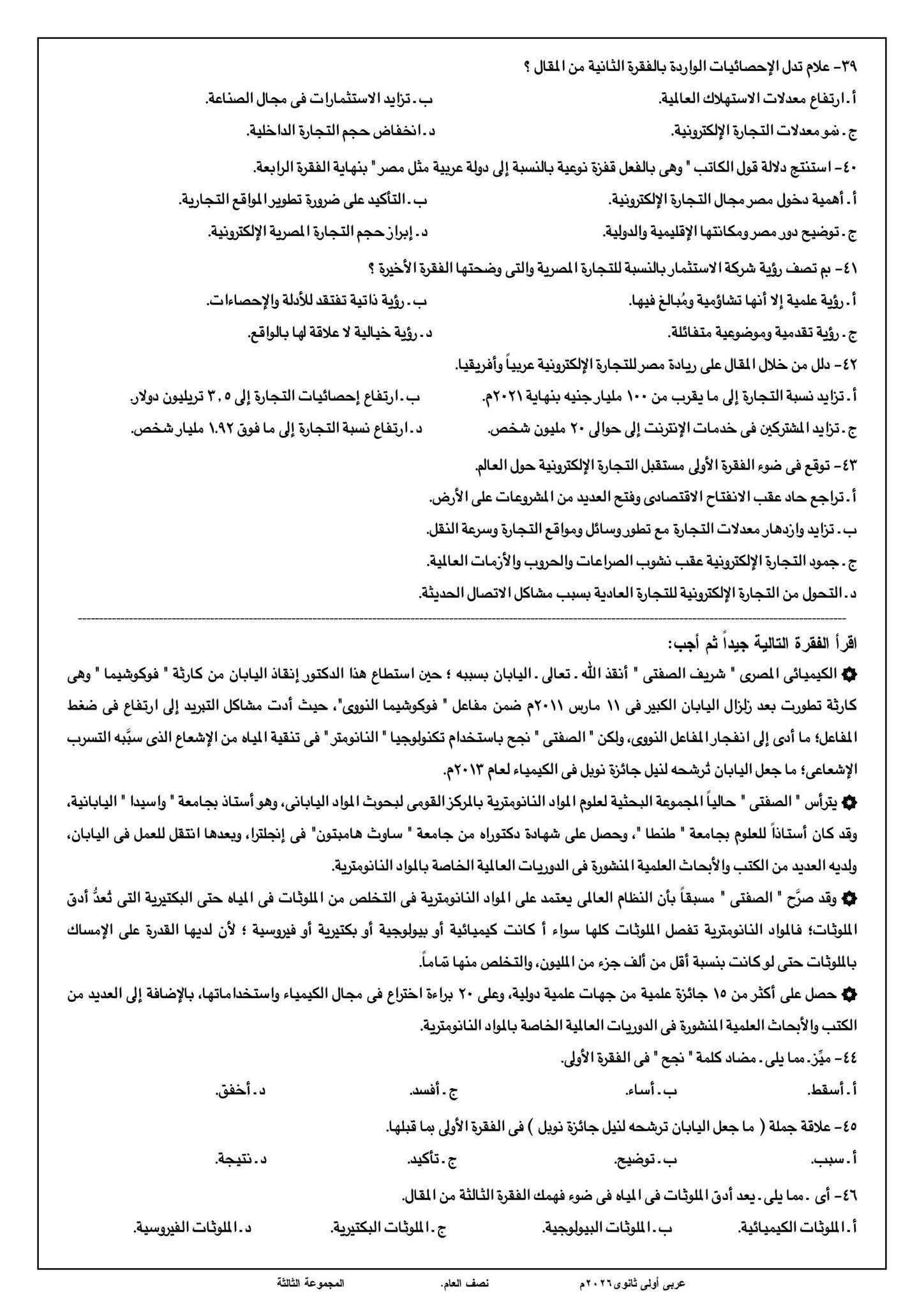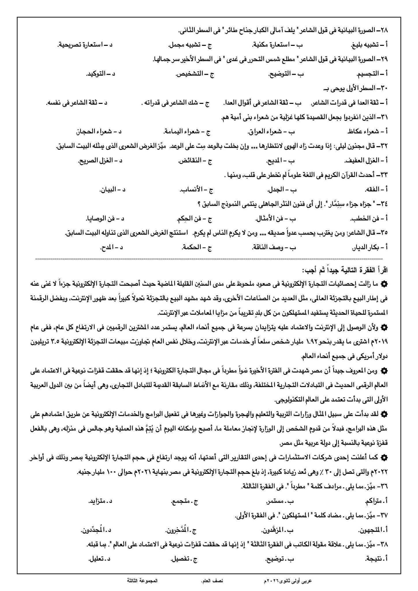 ويمكن الحصول على إجابة أسئلة امتحان العربي لطلاب الثاني الثانوي الترم الأول 2026 من خلال مطالعة الصور التالية