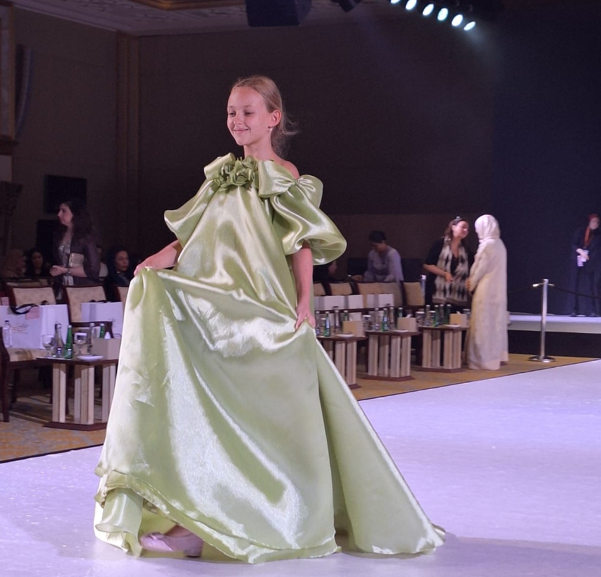 وأكدت أن عروض أسبوع الموضة شارك فيها 85 طفلا يمثلون عددا كبيرا من دول العالم من مختلف المراحل السنية حيث تراوحت أعمارهم بين 4 سنوات و16 عاما وجميعهم تألقوا على مسرح العرض وكانوا نجوما متميزين وسفراء لامعين لبلدانهم.