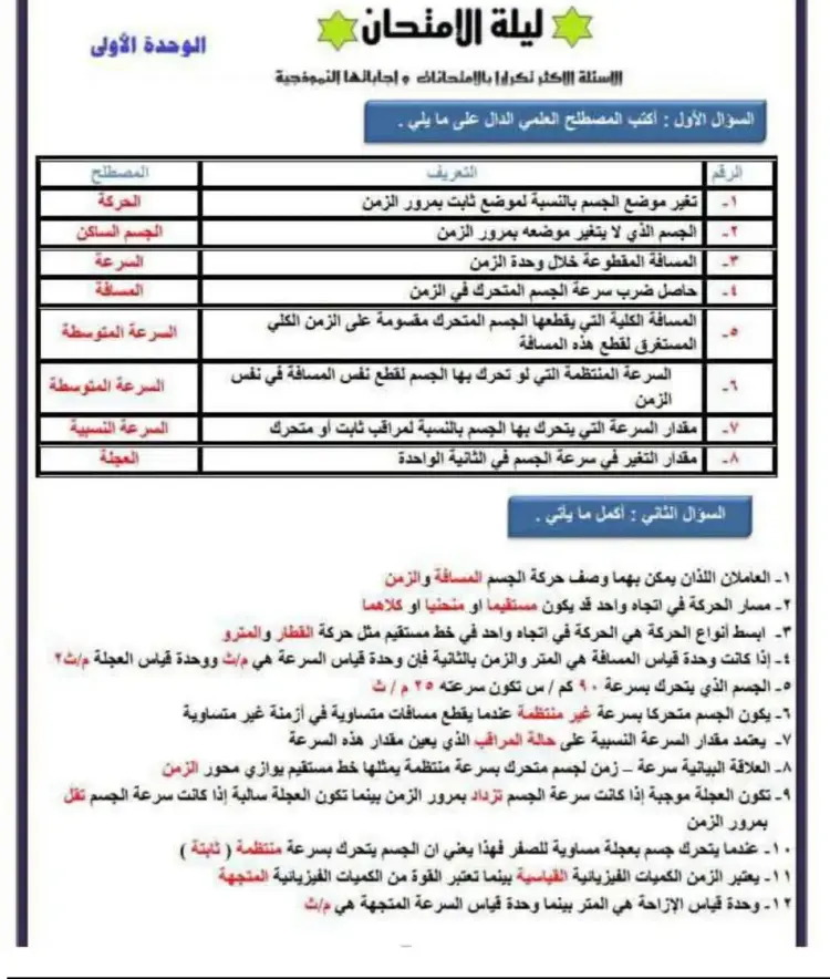 المراجعة النهائية مادة العلوم 2026 الشهادة الإعدادية
