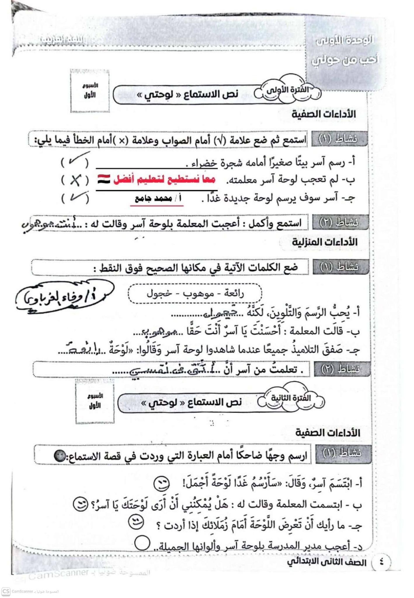 حل تقييم اللغة العربية للصف الثاني الابتدائي 2026 الأسبوع الأول والثاني