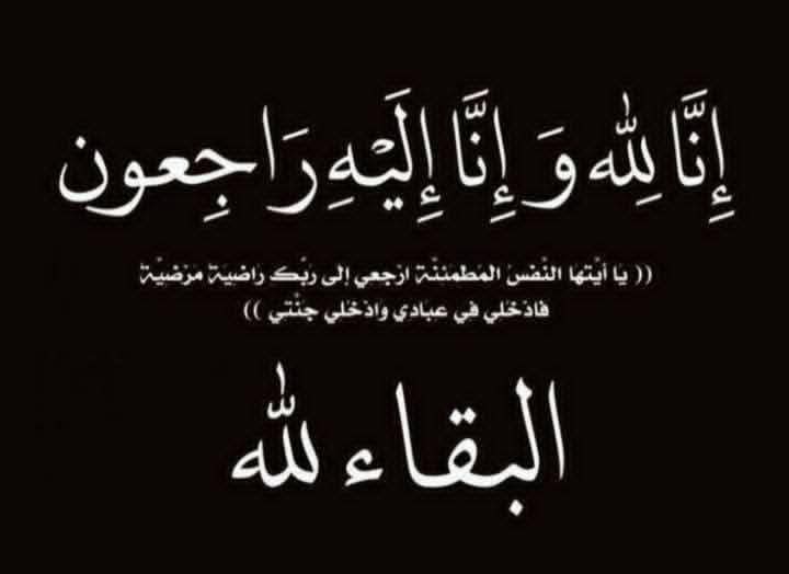 سائلين المولي عز وجل أن يتغمد الفقيد برحمته وان يسكنها فسيح جناته وأن يلهم أهلها وذويها الصبر والسلوان.