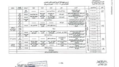 توزيع منهج اللغة العربية للمرحلة الإعدادية 2026 pdf الترم الثاني